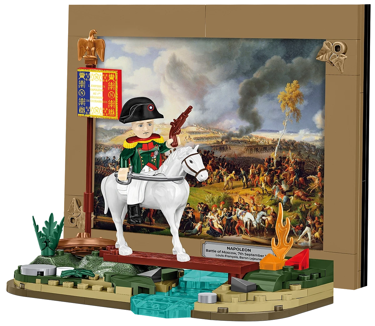 Sięgnij po wyjątkowy zestaw i przenieś się w sam środek jednej z najbardziej dramatycznych bitew epoki napoleońskiej. Dzięki mini dioramie przedstawiającej bitwę pod Borodino (bitwa nad rzeką Moskwą) stajesz się świadkiem historii, którą możesz stworzyć z klocków!
