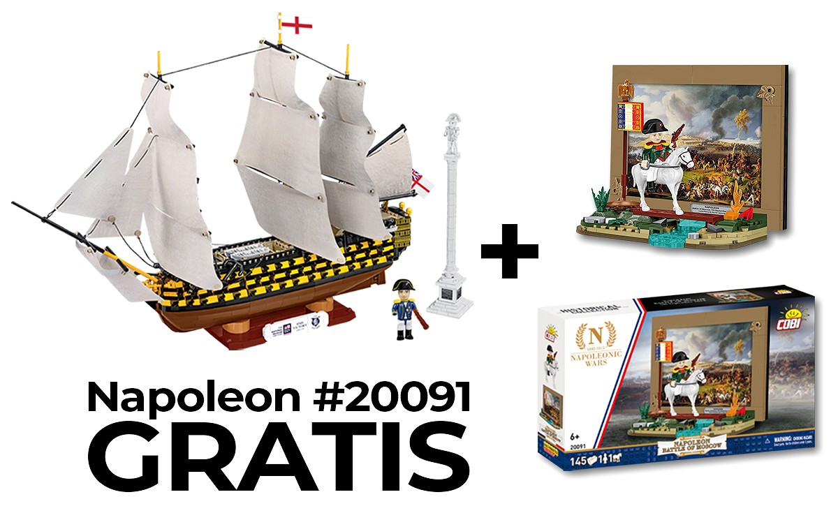 Kupując model HMS Victory (Trafalgar 1805), otrzymujesz wyjątkowy prezent, zestaw z serii Napoleonic Wars: Bitwa Napoleona pod Moskwą (Borodino 1812), który przenosi Cię w sam środek burzliwych wydarzeń epoki napoleońskiej.