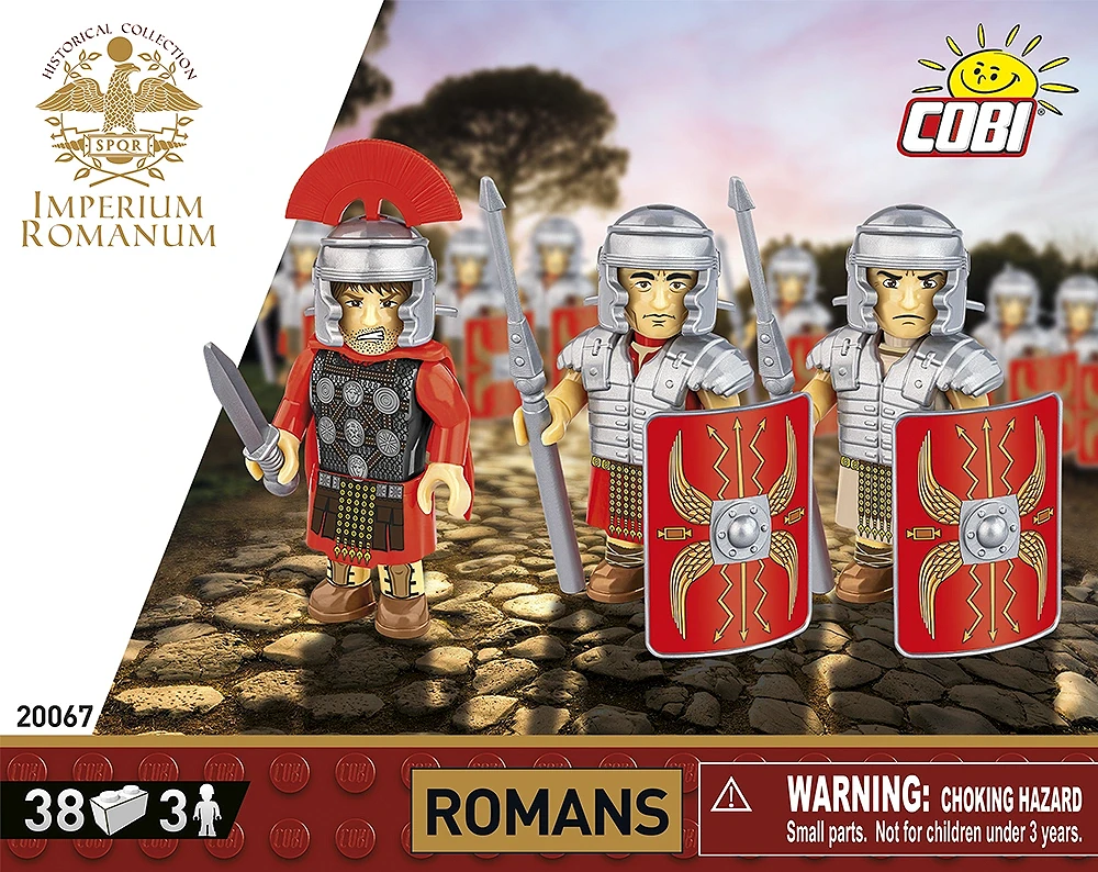 Trzy figurki - Zestaw zawiera trzy figurki, dwóch legionistów oraz centuriona. COBI zadbało o najmniejsze szczegóły, dzięki czemu każda z figurek jest wiernym odwzorowaniem rzymskich wojowników.